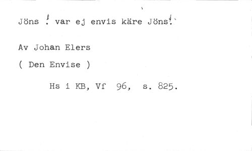 Jöns • var ej envis käre Jöns.' //// Av Johan Elers ( Den Envise ) //// Hs i KB, Vf 96, s. 825.
