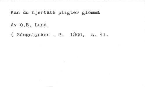 Kan du hjertats pligter glömma //// Av O.B. Lund //// ( Sångstycken , 2, 1800, s. 41.