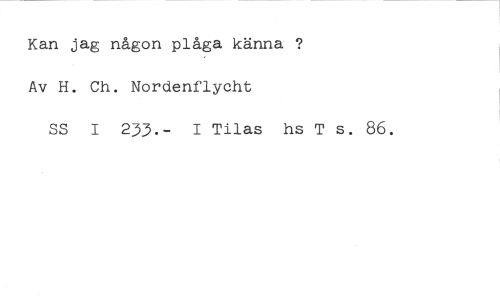 Kan jag någon plåga känna ? Av H. Ch. Nordenflycht //// SS I 233.- I Tilas hs T s. 86.