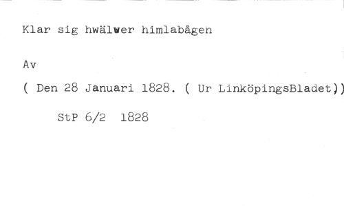 Klar sig hwälwer himlabågen //// Av //// ( Den 28 Januari 1828. ( Ur LinköpingsBladet)) //// StP 6/2 1828