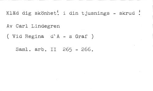 Kläd dig skönhett i din tjusnings - skrud //// Av Carl Lindegren //// ( Vid Regina d'A - s Graf ) //// Samt. arb. II 265 - 266.