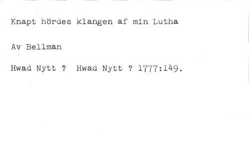 Knapt hördes klangen af min Lutha //// Av Bellman //// Hwad Nytt ? Hwad Nytt ? 1777:149•