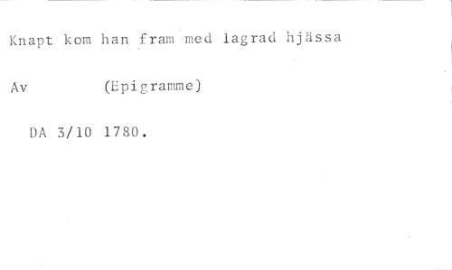Knapt kom han fram med lagrad hjässa //// Av (Epigramme) //// DA 3/10 1780.