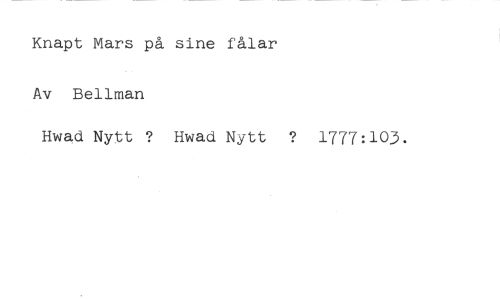 Knapt Mars på sine fålar //// Bellman //// Hwad Nytt ? Hwad Nytt ? 1777:103.