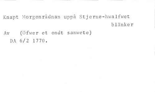 Knapt Morgonrådnan uppå Stjerne-hwalfwet //// blänker //// Av (tfwer et ondt samwete) //// DA 6/2 1770.