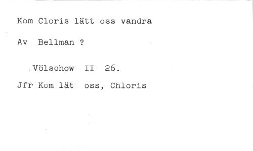 Kom Cloris lätt oss vandra Av Bellman ? //// Völschow II 26. //// Jfr Kom lät oss, Chloris