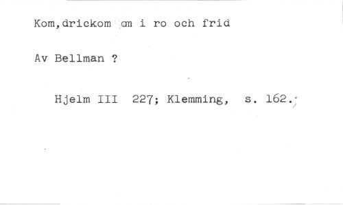 Kom,drickom an i ro och frid Av Bellman ? //// Hjelm III 227; Klemming, s. 162.•