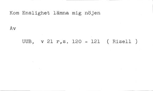 Kom Enslighet lämna mig nöjen Av //// UUB, v 21 r,s. 120 - 121 ( Risell )