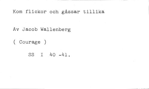 Kom flickor och gåssar tillika //// Av Jacob Wallenberg ( Courage ) //// SS I 40 -41.