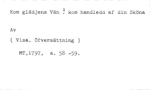 Kom glädjens Vän . kom handledd af din Sköna //// Av //// ( Visa. Öfversättning ) //// MT,1797, s. 58 -59.