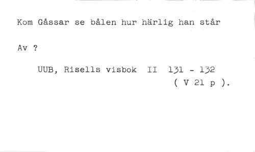 Kom Gåssar se bålen hur härlig han står Av ? //// UUB, Risells visbok II 131 - 132 //// ( V 21 p ).