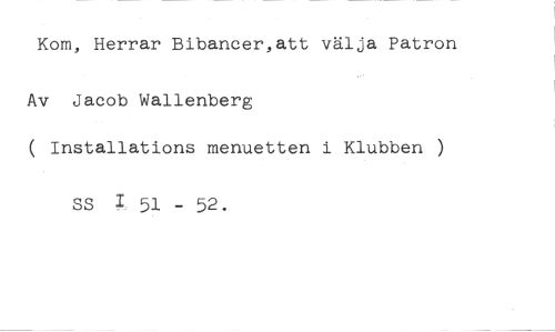 Kom, Herrar Bibancer,att välja Patron //// Av Jacob Wallenberg //// ( Installations menuetten i Klubben ) //// SS 1 51 - 52.