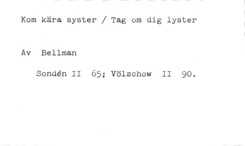 Kom kära syster / Tag om dig lyster //// Av Bellman //// SoncAn II 65; Völschow II 90.
