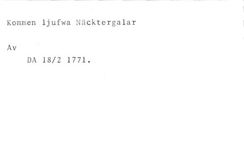 Kommen ljufwa Näcktergalar //// Av //// DA 18/2 1771.