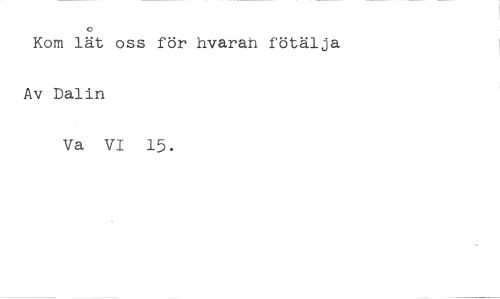 0 //// Kom lät oss för hvarah fötälja //// Av Dalin //// Va VI 15.