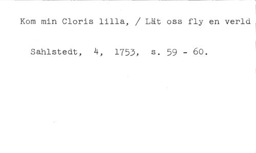 Kom min Cloris lilla, / Lät oss fly en verld //// Sahlstedt, 4, 1753, s. 59 - 60.