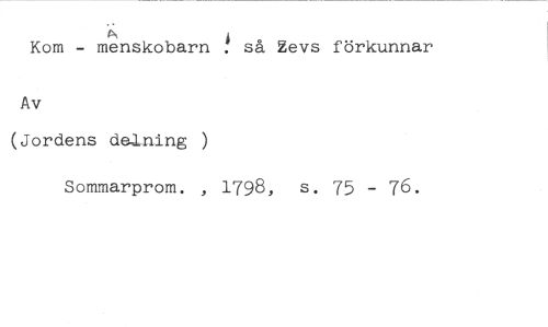 så Kom - menskobarn . sa Zevs förkunnar //// Av //// (Jordens delning //// Sommarprom. , 1798, s. 75 - 76.