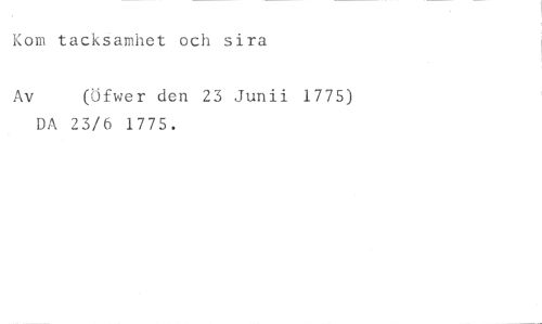 Kom tacksamhet och sira //// Av (Öfwer den 23 Junii 1775) //// DA 23/6 1775.