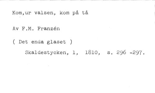 Kom,ur valsen, kom på tå Av F.M. Franzén //// ( Det enda glaset ) //// Skaldestycken, 1, 1810, s. 296 -297.