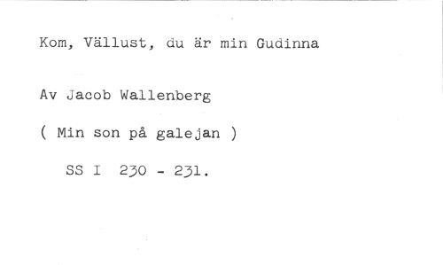 Kom, Vällust, du är min Gudinna //// Av Jacob Wallenberg //// ( Min son på galejan ) SS I 230 - 231.