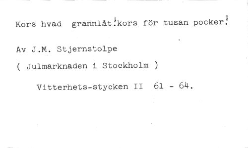 Kors hvad grannlåt!kors för tusan pocker! //// Av J.M. Stjernstolpe //// ( Julmarknaden i Stockholm ) //// Vitterhets-stycken II 61 - 64.