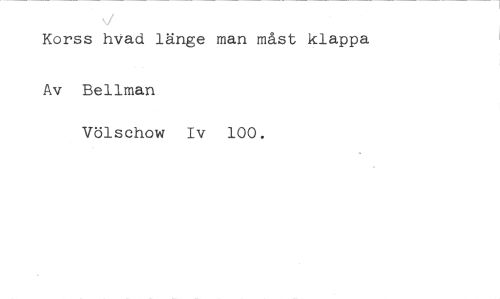 Korss hVad länge man måst klappa //// Av Bellman //// Völschow Iv 100.