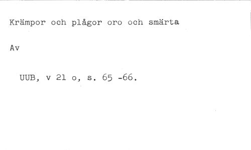 Krämpor och plågor oro och smärta Av //// UUB, v 21 o, s. 65 -66.