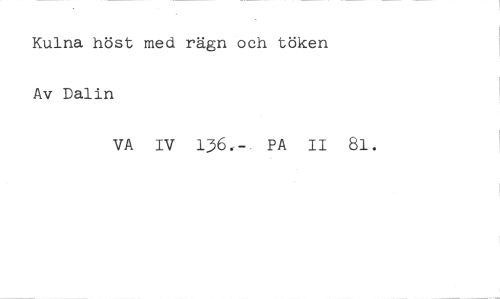 Kulna höst med rägn och töken Av Dalin //// VA IV 136.- PA II 81.