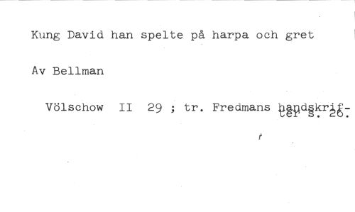 Kung David han spelte på harpa och gret Av Bellman //// Völschow II 29 ; tr. Fredmans gpdgkrM: