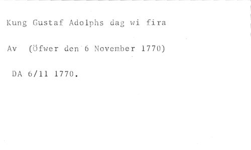 Kung Gustaf Adolphs dag wi fira //// Av (t5fwer den*6 November 1770) //// DA 6/11 1770.