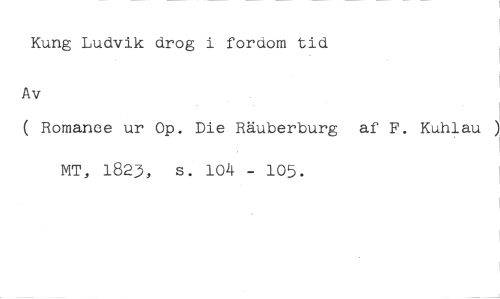 Kung Ludvik drog i fordom tid //// Av //// ( Romance ur Op. Die Räuberburg af F. Kuhlau ) //// MT, 1823, s. 104 - 105.
