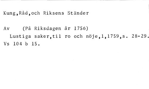 Kung,Råd,och Riksens Ständer //// Av (På Riksdagen år 1756) //// Lustiga saker,til ro och nöje,1,1759,s. 28-29. Vs 104 b 15.