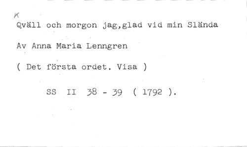 Qväll och morgon jag,glad vid min Slända Av Anna Maria Lenngren //// ( Det första ordet. Visa ) //// SS II 38 - 39 ( 1792 ).