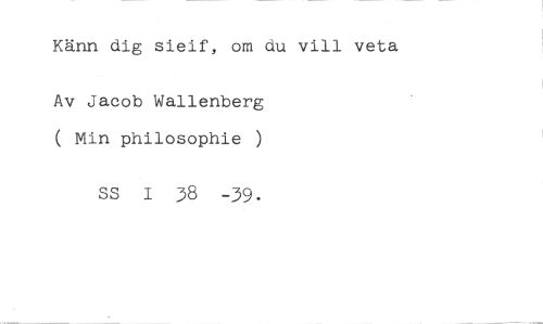 Känn dig sieif, om du vill veta //// Av Jacob Wallenberg ( Min philosophie ) //// SS 1 38 -39.
