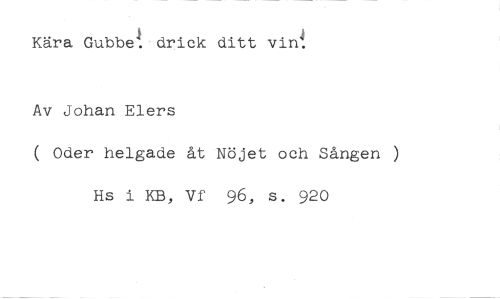 Kära Gubbe drick ditt vin. //// Av Johan Elers //// ( Oder helgade åt Nöjet och Sången ) Hs i KB, Vf 96, s. 920