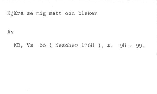 Kjära se mig matt och bleker Av //// KB, Vs 66 ( Nescher 1768 ), s. 98 - 99.
