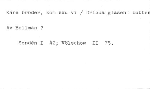 Käre bröder, kom sku vi / Dricka glasen i botten Av Bellman ? //// Sond6n I 42; Völschow II 75.