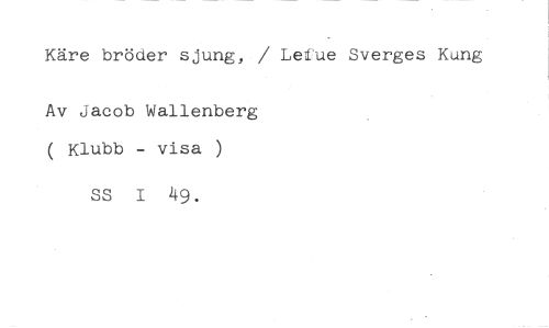 Käre bröder sjung, / Leiue Sverges Kung //// Av Jacob Wallenberg ( Klubb - visa ) //// SS I 49.