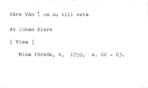 • //// Käre Vän . om du vill veta //// Av Johan Elers ( Visa ) //// Mina försök, 4, 1759, s. 62 - 63.