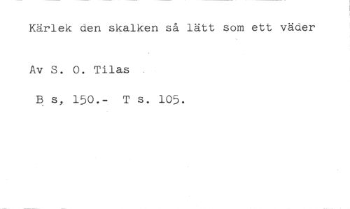 Kärlek den skalken så lätt som ett väder //// Av S. 0. Tilas //// B s, 150.- T s. 105.