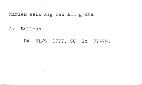 Kärlek satt sig ned att gråta //// Av Bellman //// DA 31/5 1777. SU Ix 77-79.