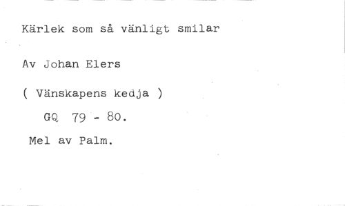 Kärlek som så vänligt smilar Av Johan Elers //// ( Vänskapens kedja GQ 79- 80. Mel av Palm.