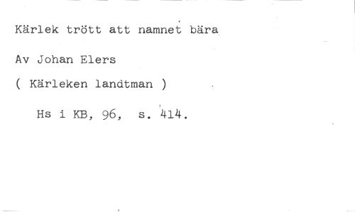 Kärlek trött att namnet bära. //// Av Johan Elers //// ( Kärleken landtman ) //// Hs i KB, 96, s. 414.