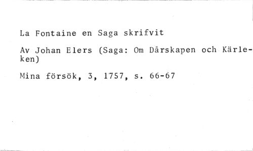 La Fontaine en Saga skrifvit //// Av Johan Elers (Saga: Om Dårskapen och Kärleken) //// Mina försök, 3, 1757, s. 66-67