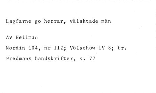 Lagfarne go herrar, välaktade män //// Av Bellman //// Nordin 104, nr 112; Völschow IV 8; tr. Fredmans handskrifter, s. 77