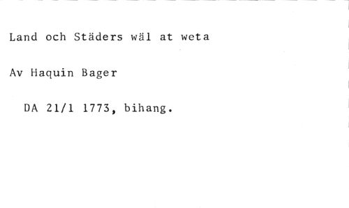 Land och Städers wäl at weta //// Av Haquin Bager //// DA 21/1 1773, bihang.