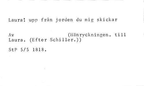 Laura! upp från jorden du mig skickar //// Av (Hänryckningen. till //// Laura. (Efter Schiller.)) //// StP 5/5 1818.