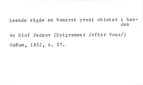Leende vägde en Romersk prest oblater i han- //// den //// Av Elof Jedeur (Epigrammer /efter Vossn Od6um, 1832, s. 57.