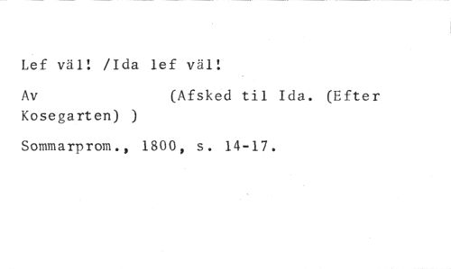 Lef val! /Ida lef val! //// Av (Afsked til Ida. (Efter //// Kosegarten) ) //// Sommarprom., 1800, s. 14-17.
