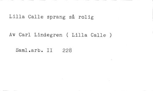 Lilla Calle sprang så rolig //// Av Carl Lindegren ( Lilla Calle ) //// Saml.arb. II 228